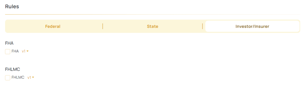 - Added the “Investor/Insurer” rule category (alongside the existent Federal and State), allowing for easier regulation filtering in the Build menu